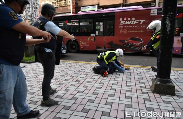 10日下午14時(shí),高雄市人行道上,一名戴著賽車競(jìng)技手套、身高約180公分的男子被警方壓制在地上動(dòng)彈不得,直喊“不要壓我,我不會(huì)跑啦”。