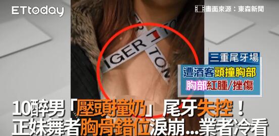 據(jù)悉有近10名喝醉的男子將戴女按在被壓制的男子身上,還有一名醉漢按著該男子的頭,不斷撞擊戴女的胸部;期間主持人及廠商不僅沒有出聲制止,竟還都在一旁目睹全程。事后,廠商見戴女胸口紅腫,才不得不連忙道歉、請求其不要將事情鬧大。