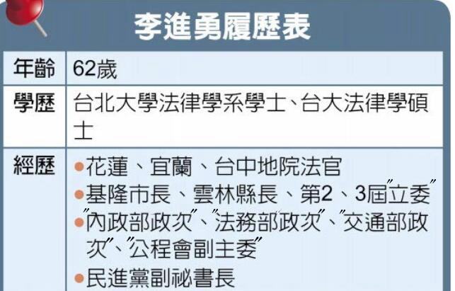 據(jù)悉,蘇、李二人交情甚篤!比如在2014年李進(jìn)勇角逐云林縣長時(shí),已卸任黨主席的蘇貞昌就仍前往云林陪同李掃街拜票;蘇貞昌還稱贊過李進(jìn)勇“學(xué)經(jīng)歷俱優(yōu)”,且不管在法律專業(yè)領(lǐng)域還是在臺當(dāng)局有關(guān)部門擔(dān)任“政務(wù)次長”時(shí),“都有稱職穩(wěn)健的表現(xiàn)”。這次,蘇貞昌更是親自征詢李進(jìn)勇為“中選會主委”!
