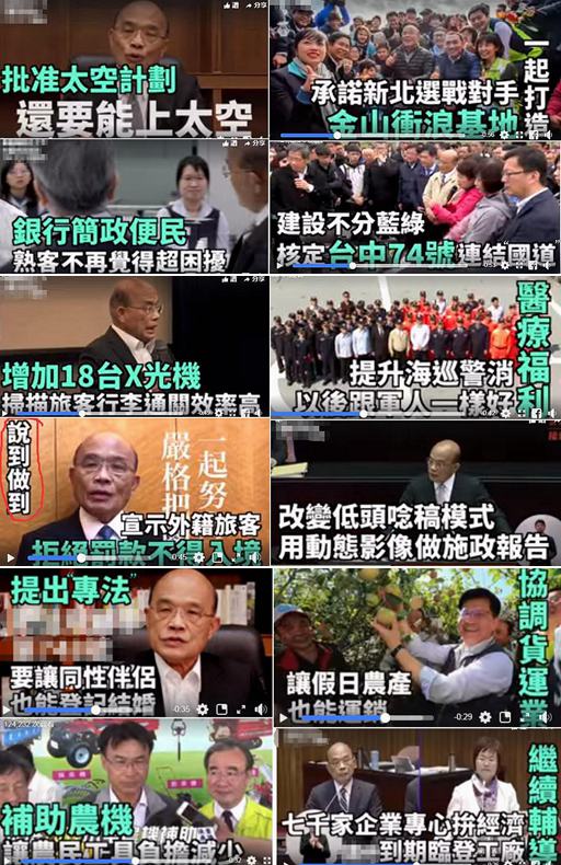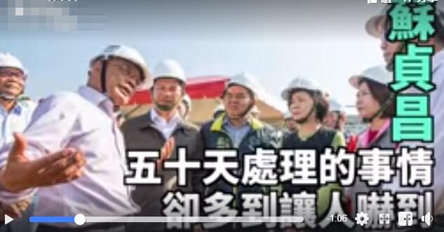 都鋪墊好后,影片便開啟了“旋風(fēng)式”夸獎的模式,細數(shù)了“沖沖沖”“院長”蘇貞昌上任以來的一系列政績!