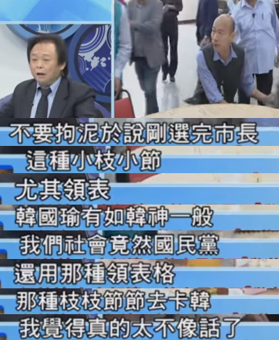 王世堅在政論節(jié)目中,首先試圖對自己的身份進(jìn)行一次明確的定位。當(dāng)他表示自己不是“韓粉”時,立即遭到了嘉賓的回?fù),有人表示,他離“韓粉”只有一線之隔了;也有人表示,王世堅應(yīng)該是“冰粉”(韓國瑜女兒韓冰的粉絲);還有嘉賓提出了“正確答案”:你是“柯黑”。