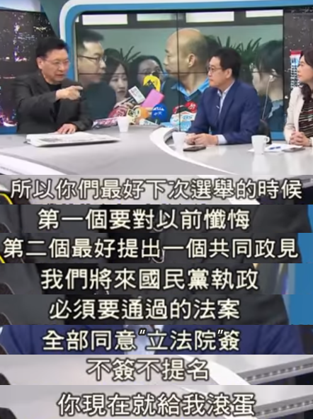 該說不說,費鴻泰這個論斷還真是不容易反駁~所以節(jié)目中,資深媒體人趙少康提議,國民黨應(yīng)該“懺悔”,臺灣老百姓曾經(jīng)給過你們機會,到最后卻什么都通過不了。