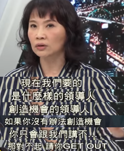 媒體人陳鳳馨說得更直接,我們臺灣人需要的是能夠創(chuàng)造機會的領(lǐng)導(dǎo)人,如果只會說不不不,那就請你離開!