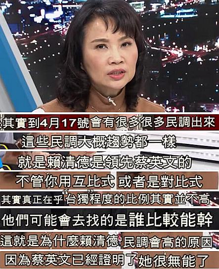 媒體人陳鳳馨說得更直接:拋開“臺獨”程度來看,臺灣老百姓就是覺得——蔡英文很無能!