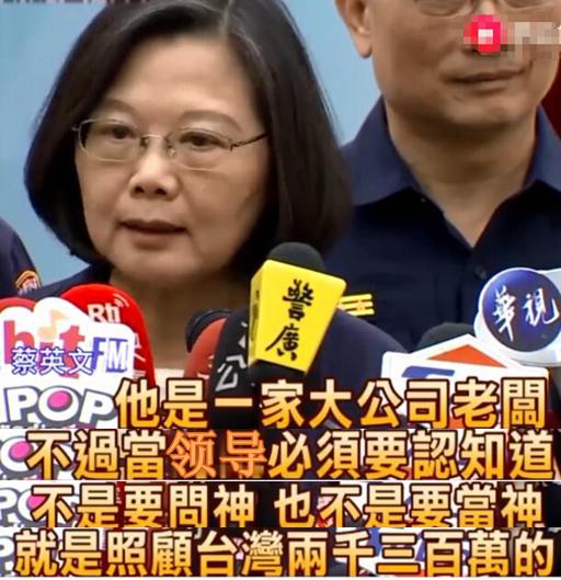 先是抨擊郭臺(tái)銘的“媽祖托夢(mèng)”說,稱當(dāng)領(lǐng)導(dǎo)人不是“問神”,讓郭必須要認(rèn)知到臺(tái)灣地區(qū)領(lǐng)導(dǎo)人“有2300萬個(gè)老板”,還勸身為大老板的郭臺(tái)銘“調(diào)整下心態(tài)”;接著,又說自己是因?yàn)楦鷭屪妗霸谝黄鹁昧恕,所以根本不需要托?mèng)……