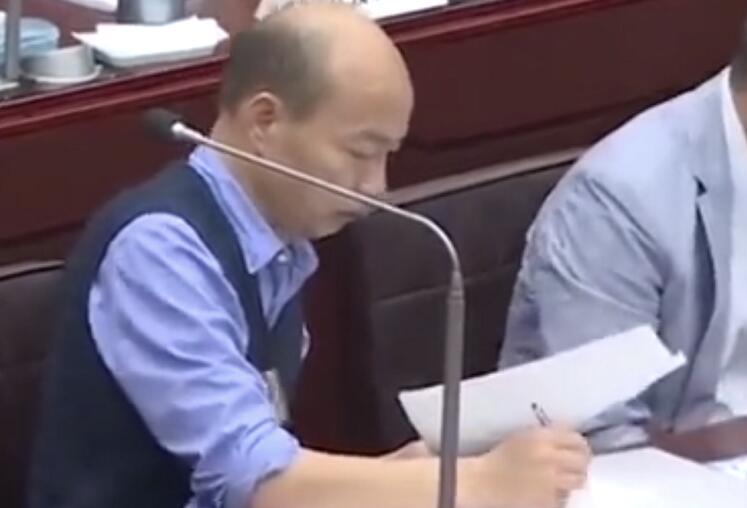 反觀另一當(dāng)事人、高雄市長韓國瑜,在這次的質(zhì)詢會上倒真像個“小學(xué)生”了,在“冷板凳”上認真地開啟“記錄模式”……