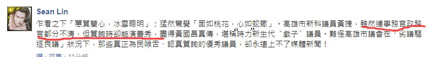 不得不說啊,經(jīng)過這兩次與韓國瑜的交鋒,“時代力量”終于又見“后起之秀”,有網(wǎng)友就“盛贊”黃捷,堪稱“時代力量”新生代“戲子”議員!