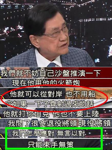 臺灣時事評論員葉耀鵬更大膽的為兩岸“武統(tǒng)戰(zhàn)爭”做了沙盤推演,遺憾的是,他的問題令臺軍現(xiàn)役及退役將領(lǐng)——無言以對!