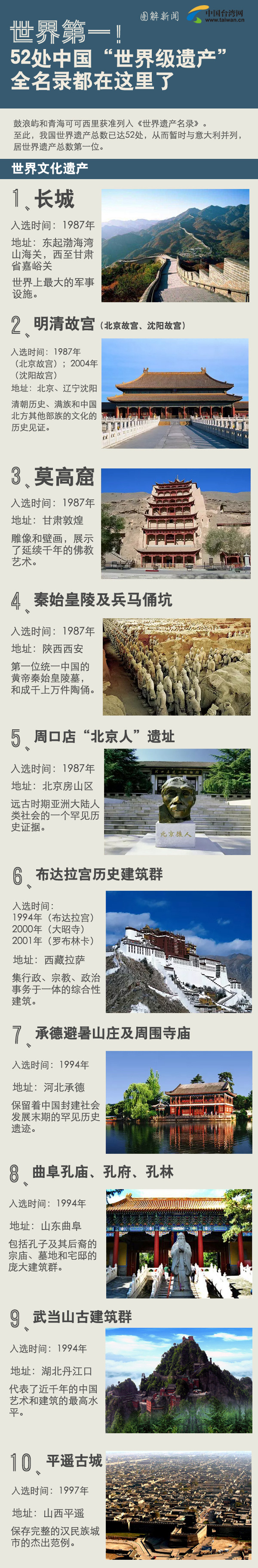 【圖解新聞】52處中國(guó)“世界級(jí)遺產(chǎn)”全名錄