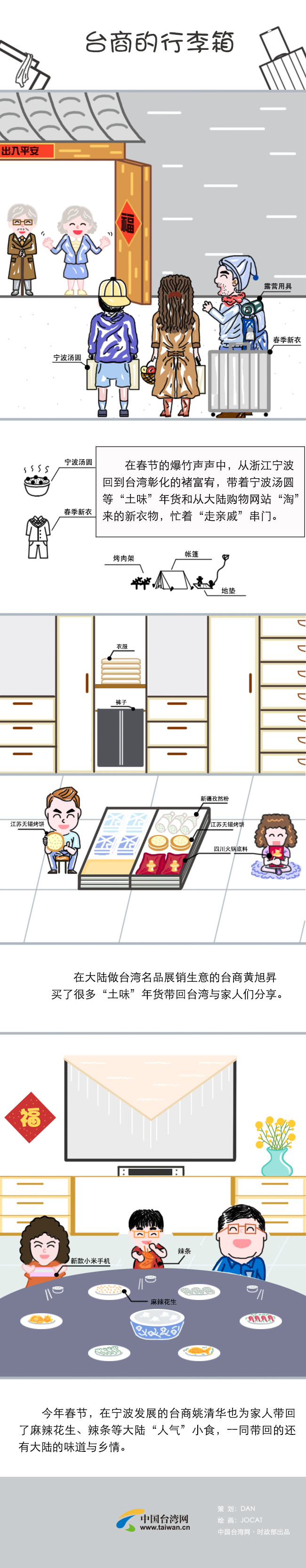 春節(jié)期間,在陸臺商紛紛跨越淺淺的一灣海峽,返回臺灣過年。而在他們的“年貨禮包”中,既有“舌尖上”的大陸傳統(tǒng)美食,也有與時俱進(jìn)的“觸網(wǎng)”新配方。這些琳瑯多元的年貨,折射出兩岸交流的日益緊密,以及“兩岸一家親”的情感融合。
