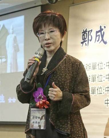 國民黨前主席洪秀柱出席“鄭成功收復(fù)臺灣355周年論壇”。(圖片來源:臺灣“中時電子報”)