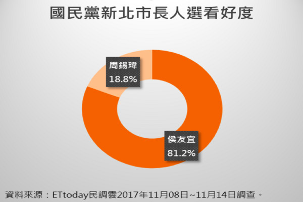 據(jù)臺灣“東森新聞云”8月份報道,國民黨主席吳敦義與新北市長朱立倫達成共識,將派出目前民調(diào)較穩(wěn)的侯友宜力守。侯友宜也積極經(jīng)營臉譜網(wǎng)(Facebook)并對重要時事發(fā)表意見,看得出相當(dāng)有企圖心。有民調(diào)指出,就算民進黨派出賴清德參選,在全體網(wǎng)友的意見中,侯以42.2%支持度擊敗賴的38%。