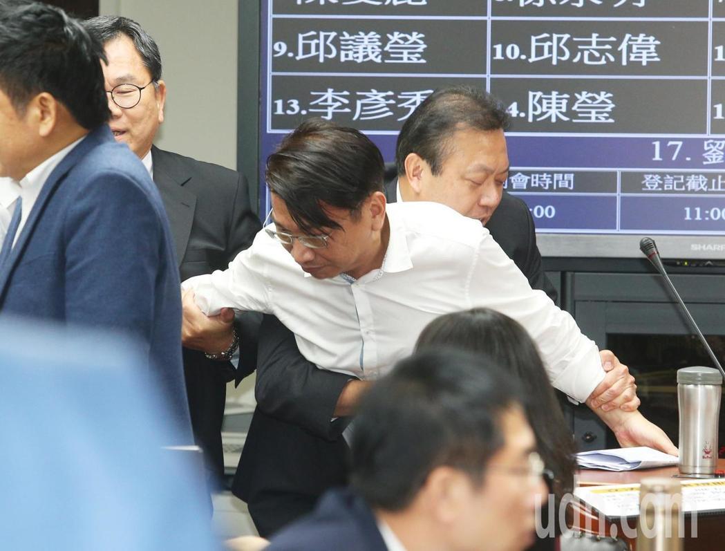 然而,輪到柯建銘發(fā)言時(shí),徐永明仍高喊“違法開(kāi)會(huì)”的主張,讓柯動(dòng)怒砲轟,“你不要像鸚鵡一樣!”并要求“時(shí)力”黨主席黃國(guó)昌主持正義一下,但黃沒(méi)有動(dòng)作。民進(jìn)黨團(tuán)書(shū)記長(zhǎng)何欣純站上發(fā)言臺(tái),與徐永明發(fā)生推擠,發(fā)言臺(tái)一人一半。