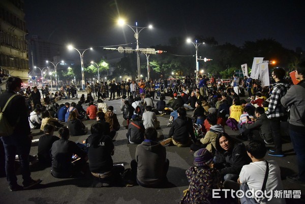 抗?fàn)幷咦隈R路上。(圖片來源:臺灣“東森新聞云”)