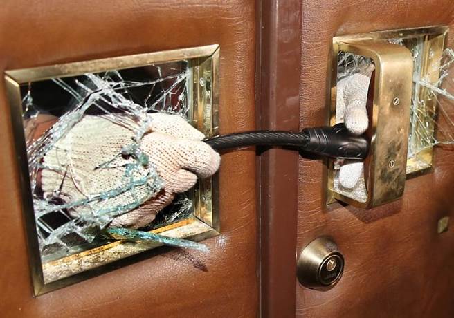 徐永明敲破議場門口玻璃“突襲”后,以鐵鏈反鎖。(圖片來源:臺(tái)灣《聯(lián)合報(bào)》)