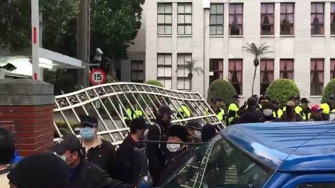 今天清晨5時(shí)50分,反年改團(tuán)體搭乘游覽車突襲“立法院”,現(xiàn)場聚集約50人沖撞“立法院”鐵門,反年改團(tuán)體堅(jiān)持要交陳情書給“院長”蘇嘉全“要讓他知道,我們?nèi)虩o可忍!”