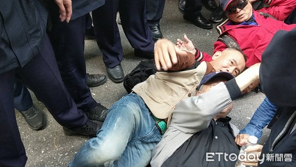 反年改再?zèng)_“立院”,退役陸將吳斯懷疑似被沖撞后倒地受傷送醫(yī)。 (圖翻攝李來希臉書)