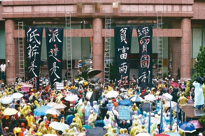“勞基法”“修法”爭議不斷,勞動主管部門頻見勞團集結(jié)抗議。(圖片來源:臺灣《聯(lián)合報》)