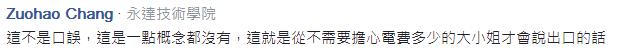 臺網(wǎng)友也忍不住嘲諷:“什么推論?都不用多搜集資料核實(shí)后再發(fā)言?光她穿長袖吹冷氣,2顆電池?fù)?天?”“有錢人怎么會(huì)懂電費(fèi)要怎么算”“她不食人間煙火久矣!她說的都是天上的話!薄八苑▏伺渚坪忍啵惶斓酵碚f醉話,都不知她再說什么!”“看她講錯(cuò)了會(huì)不會(huì)道歉?”“只有電池有什么用,要用啥發(fā)電后蓄電呢?難道是愛!”