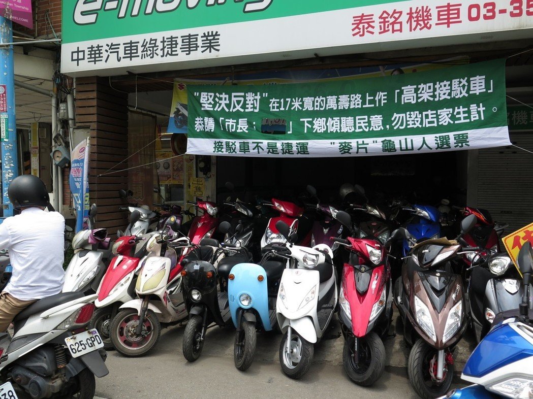 桃園捷運(yùn)棕線高架化爭議,近日有商家串連拉起布條反對(duì)。(圖片來源:臺(tái)灣《聯(lián)合報(bào)》)