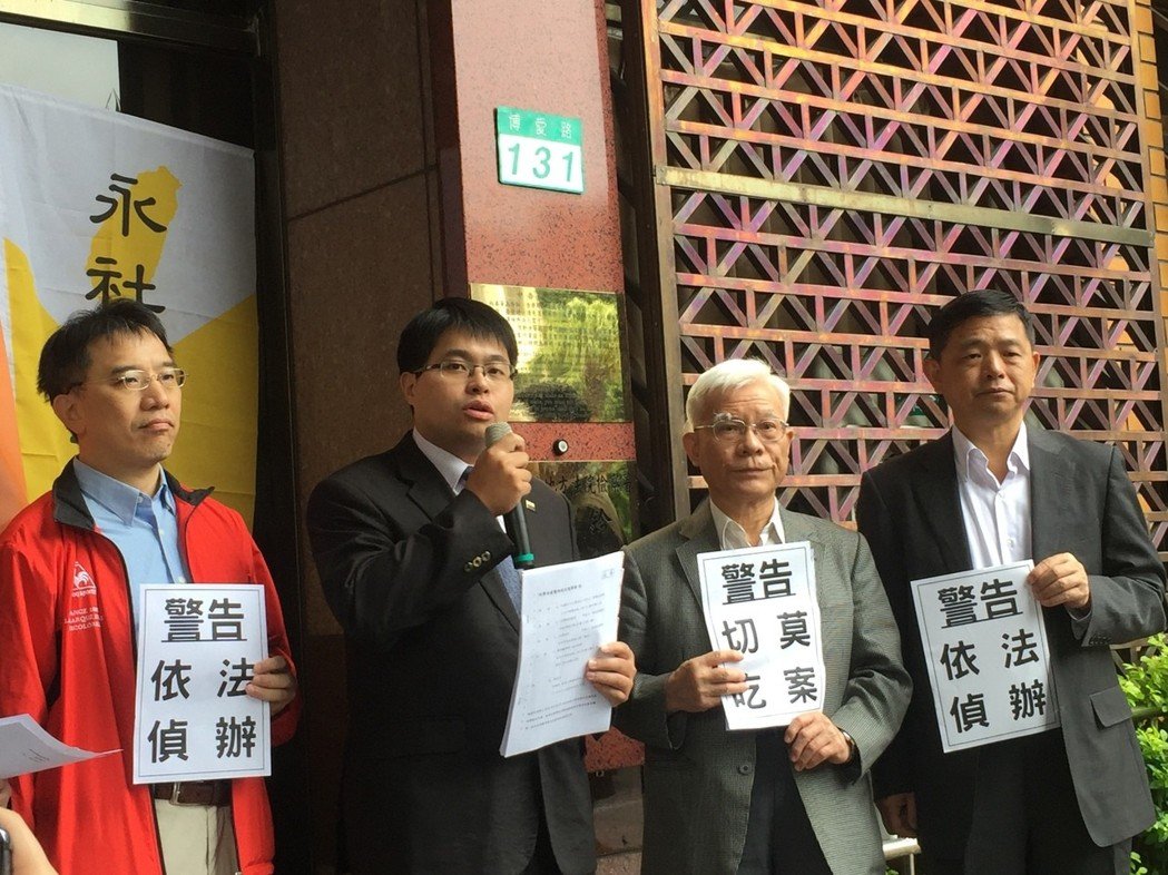 永社、臺灣北社、臺灣教授協(xié)會委請律師黃帝穎(左二)告發(fā)馬英九。(圖片來源:臺灣《聯(lián)合報》)