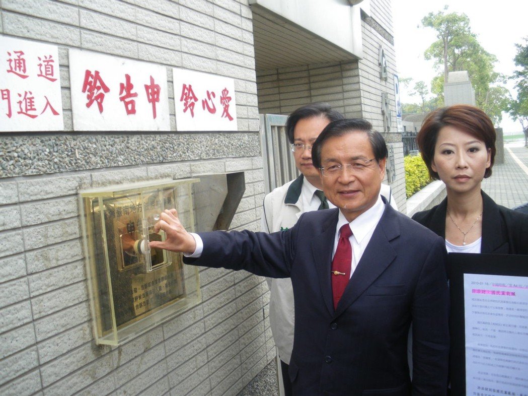 前臺南市長許添財曾為國民黨推出有關(guān)“地制法”的電視廣告,告馬英九、金溥聰涉嫌加重誹謗。(圖片來源:臺灣《聯(lián)合報》)
