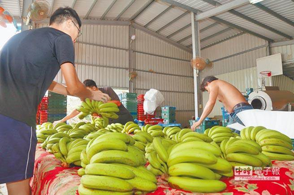 圖為蕉農(nóng)忙著整理香蕉。(圖片來(lái)源:臺(tái)灣《中時(shí)電子報(bào)》)