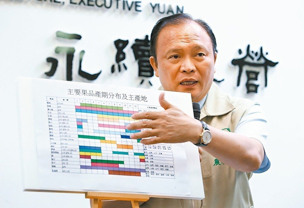 “農(nóng)委會(huì)主委”林聰賢舉行記者會(huì),提出穩(wěn)定產(chǎn)銷政策。(圖片來(lái)源:臺(tái)灣《聯(lián)合報(bào)》)