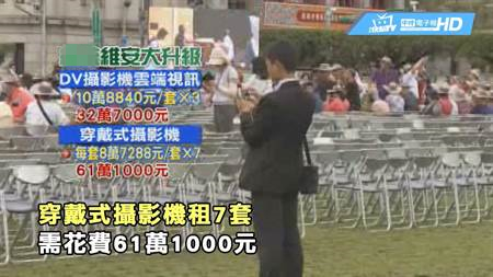據(jù)報道,1套10萬(新臺幣,下同)多的DV攝影云端視訊服務(wù)預(yù)計租借3套,共需花費32萬7000元。穿戴式攝影機(jī)每套8萬7288元要租7套,花費61萬1000元。其他網(wǎng)路傳輸設(shè)備加上電源擴(kuò)充模組,總計需花費100萬元。