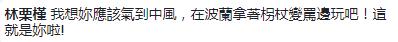 網(wǎng)友們紛紛留言“她現(xiàn)在豈不瘋掉了,淹大水耶!是全部南臺(tái)灣呢!”“邱大‘委員’這次怎么沒(méi)有講快要中風(fēng),你是以黨論黨嗎?”“氣到趕快去波蘭狂歡來(lái)壓壓驚咩”“你怎么不罵了?難不成你中風(fēng)了?丟臉啊。”“現(xiàn)世報(bào)來(lái)的真快啊”“一個(gè)旗山人跑去金門玩,一個(gè)旗山‘立委’跑去波蘭玩,不知道這次屏東女兒要砸?guī)着_(tái)電視呢?”