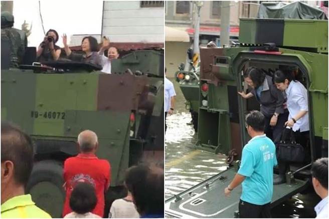 蔡英文搭裝甲車勘災(zāi)。(圖片來(lái)源:臺(tái)灣“中時(shí)電子報(bào)”)