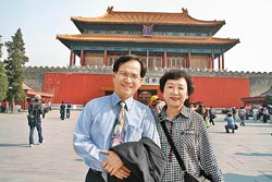 民進黨籍臺南縣長蘇煥智15日率團抵北京,將在北京舉行臺南愛文芒果的推銷會。圖為蘇煥智夫婦在故宮北門合影。來源:臺灣《中國時報》