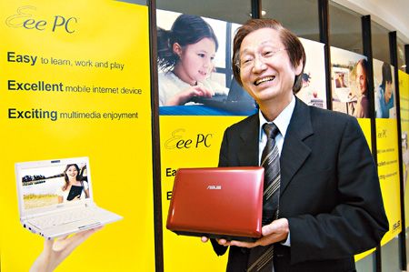 華碩董事長(zhǎng)施崇棠手持最新的Eee PC系列。 圖片來(lái)源:臺(tái)灣《中國(guó)時(shí)報(bào)》