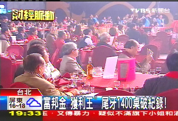 中國(guó)臺(tái)灣網(wǎng)1月8日消息 據(jù)臺(tái)灣TVBS電視臺(tái)報(bào)道,臺(tái)灣金融業(yè)行情去年特別景氣,從辦尾牙就看的出來,尤其是富邦金控,辦尾牙手筆特別大,請(qǐng)來五星級(jí)飯店大廚在南港展覽館席開1400桌,創(chuàng)下臺(tái)灣尾牙史上最盛大記錄,預(yù)期光是辦桌就要3000萬(新臺(tái)幣,下同),而尾牙抽獎(jiǎng)獎(jiǎng)金也會(huì)在千萬以上。(中國(guó)臺(tái)灣網(wǎng) 吳斌)
