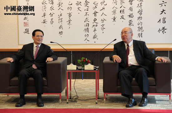中共河北省委副書(shū)記付志方一行在臺(tái)北克緹大樓與中國(guó)國(guó)民黨榮譽(yù)主席吳伯雄進(jìn)行交流。(攝影 中國(guó)臺(tái)灣網(wǎng) 陳寧)