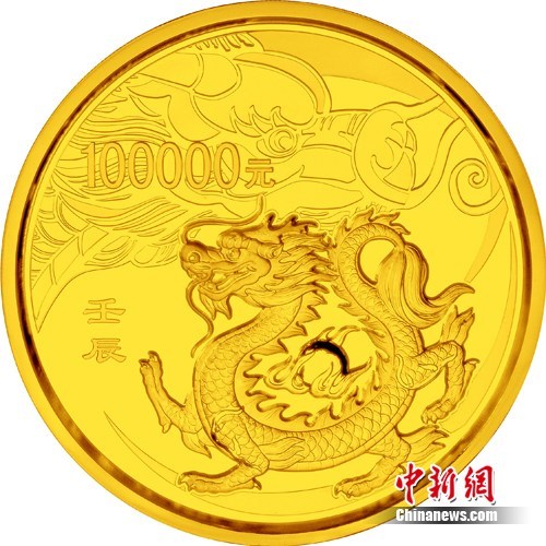 圖為中國人民銀行發(fā)行的2012年壬辰龍年圓形10公斤紀(jì)念金幣背面。