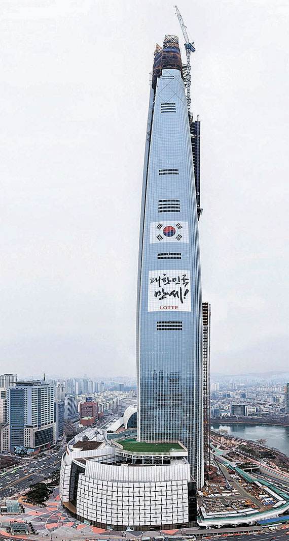 報道表示,樂天集團總計斥資4兆韓元(折合約1100億新臺幣;250億人民幣),耗時近7年興建高123層、555米的摩天大樓——“樂天世界塔”,于去年12月落成。樂天原計劃4月初對大眾開放,但因電梯故障被迫延遲2周。