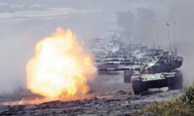 今年7月,臺軍“漢光22號”演習,坦克以火炮射擊海面目標,實施反登陸操演。但這些作戰(zhàn)計劃,最近因臺陸軍八軍團軍官涉嫌泄漏防務機密案,而被發(fā)現(xiàn)很可能已流入詐騙集團手中。(圖片來源:臺灣《聯(lián)合報》)