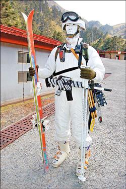 特戰(zhàn)士官兵在位于合歡山的武嶺寒訓(xùn)中心訓(xùn)練雪地轉(zhuǎn)向,穿上了雪屐后連普通轉(zhuǎn)向都變得復(fù)雜,圖為身著雪地裝備的特戰(zhàn)兵。
