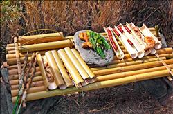 野外有了舒適的住所,吃飯也不能太隨便!吧唢灐笔翘貞(zhàn)部隊(duì)的招牌菜,把面粉加糖后拉成條狀,纏在竹桿上烘烤后就能吃了,石板加熱就成為烹調(diào)的平臺(tái),舉凡香腸、雞腿、雞翅與山蘇都能煮熟,隨便煮都是香味四溢,只是煙霧太大,戰(zhàn)時(shí)可能會(huì)暴露行蹤。