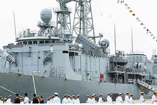 臺(tái)海軍主力戰(zhàn)艦不斷出現(xiàn)軍紀(jì)事件,圖為爆士兵砍死平民事件的鄭和軍艦。圖片來(lái)源:臺(tái)灣《蘋(píng)果日?qǐng)?bào)》