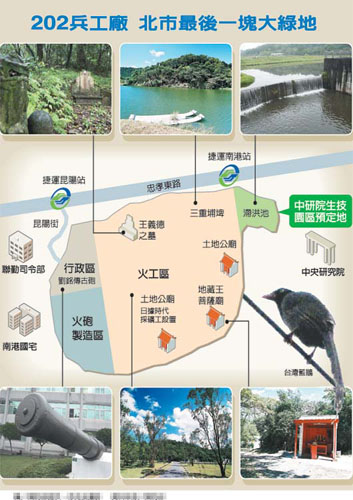臺(tái)軍方高層透露,臺(tái)軍方原規(guī)劃將這塊占地近26公頃的綠地釋出,作為親水公園或市民休憩場(chǎng)所,成為臺(tái)北市的“中央公園”。但鄰近的臺(tái)灣“中研院”一直想擴(kuò)地,也看上這塊二○二廠內(nèi)唯一廣闊平坦的地點(diǎn)。在陳水扁當(dāng)局“行政院財(cái)經(jīng)小組前召集人”邱義仁主導(dǎo)下,2007年將此地核為臺(tái)灣生技園區(qū)。
