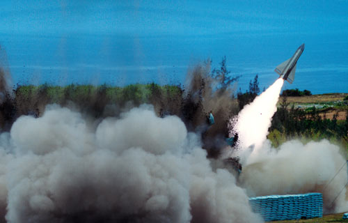 據(jù)報道,位于屏東縣滿州鄉(xiāng)港仔村和牡丹鄉(xiāng)旭海村之間的“中科院”九鵬基地,從兩個星期前就開始管制森嚴(yán),前往九鵬大沙漠及旭海大草原的觀光客,罕見地都被限制在管制區(qū)外。臺“空軍司令部”證實,第一階段實彈射擊,已經(jīng)在6日實施完畢!翱哲娝玖畈繎(zhàn)訓(xùn)處處長”汪旋周少將說,這次測考是針對遠(yuǎn)、中、近層來襲之?dāng)撤娇罩心繕?biāo),區(qū)分為“聯(lián)合防空作戰(zhàn)”及“聯(lián)合本土防衛(wèi)作戰(zhàn)”兩階段律定射擊程序,總計發(fā)射16枚導(dǎo)彈(地對空12枚、空對空4枚)。
