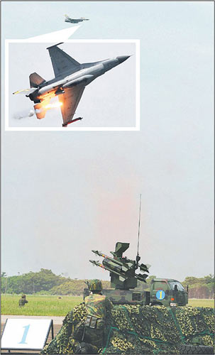 資料圖:臺灣空軍以車載劍一防空導彈與20機炮,追瞄F-16戰(zhàn)機。