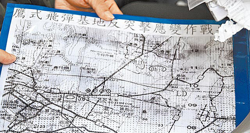 棄置文件包括鷹式飛彈基地反突擊應(yīng)變作戰(zhàn)圖。圖片來源:臺(tái)灣媒體