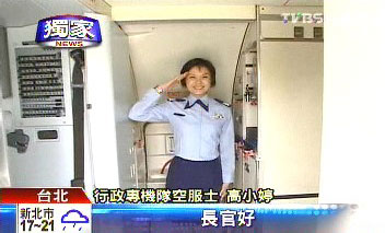 在行政專(zhuān)機(jī)隊(duì)上,笑容親切的“空服士”用甜美的笑容行“舉手禮”,她們服務(wù)的對(duì)象就是臺(tái)灣的高級(jí)行政首長(zhǎng),或是臺(tái)軍的各級(jí)長(zhǎng)官。
