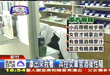 在“漢光演習(xí)”期間,臺軍后備司令部一衛(wèi)生排女軍官疑似酒后亂性,試圖碰觸男性士兵的重要部位,2人一陣沖突之后,女軍官竟然大喊“拿出來給我看”,該士兵甚至還因此受傷。