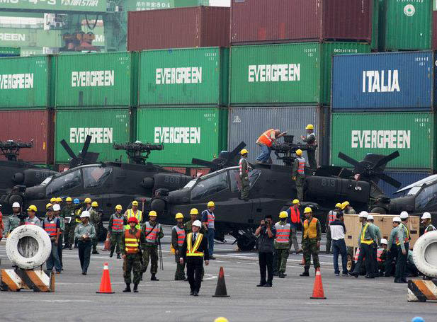 臺(tái)灣共向美國(guó)購(gòu)買30架AH-64E阿帕奇攻擊直升機(jī),首批6架日前運(yùn)抵高雄港。(網(wǎng)絡(luò)圖)