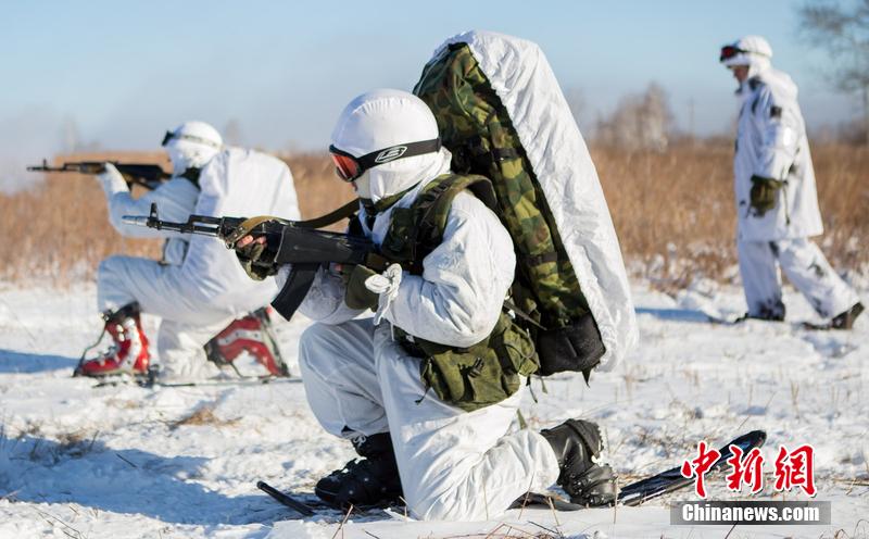 當(dāng)?shù)貢r(shí)間12月2日,俄羅斯遠(yuǎn)東地區(qū),北極步槍隊(duì)的步兵正在極寒地區(qū)開展軍事訓(xùn)練。圖片來源:東方IC 版權(quán)作品 請勿轉(zhuǎn)載
