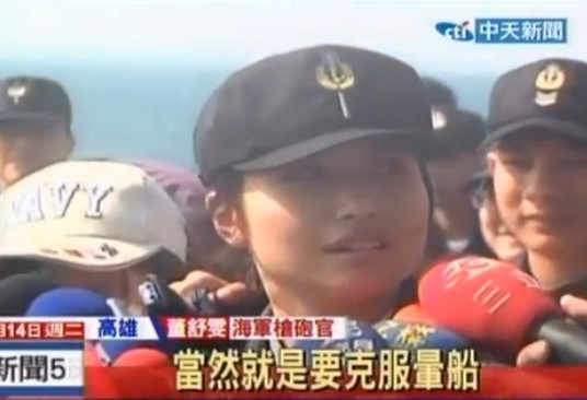 董舒雯是海軍官校第一位自費(fèi)生畢業(yè)后轉(zhuǎn)服志愿役的女軍官,目前負(fù)責(zé)槍炮人員管理和裝備操作維護(hù)督導(dǎo)。她接受媒體聯(lián)訪時說,“一開始上船最艱苦的地方就是要克服暈船,克服暈船之后,就可以學(xué)習(xí)到其他所有東西!